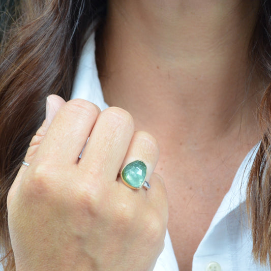 Green tourmaline ring in gold and silver