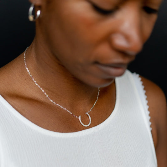 The Titan Horseshoe Necklace - sterling silver personalised horseshoe pendant - hand stamped monogram and name necklace