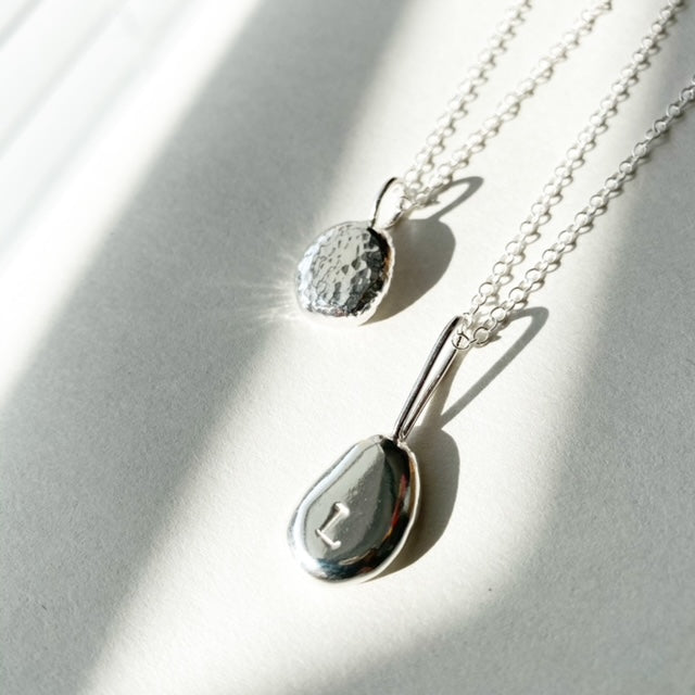 In this class you will learn how to melt, form, file, solder and finish your recycled silver to create 2 or 3 beautiful organic drop pendants which can then be personalised or textured. Bring your own silver to recycle into your new jewellery, you will need a minimum of 4 grams to make a medium sized drop. The maximum amount you can use on the day is 10 grams. If you do not have silver of your own to recycle then you can purchase scrap silver on the day based on current cost price of silver bullion (no more than £1 per gram). Please be aware I will have to check your silver at the start of the class to ensure it is suitable for recycling, and if not (for example if it is plated silver) you will have to purchase scrap silver for use in the class. You will receive one chain for your drops to hang on - if you would like to make separate pendants then additional chains will be available to purchase on the day for £6 each also. The pendant style you will make is specifically the ones shown in the pictures with options to personalise to make each pendant individual.