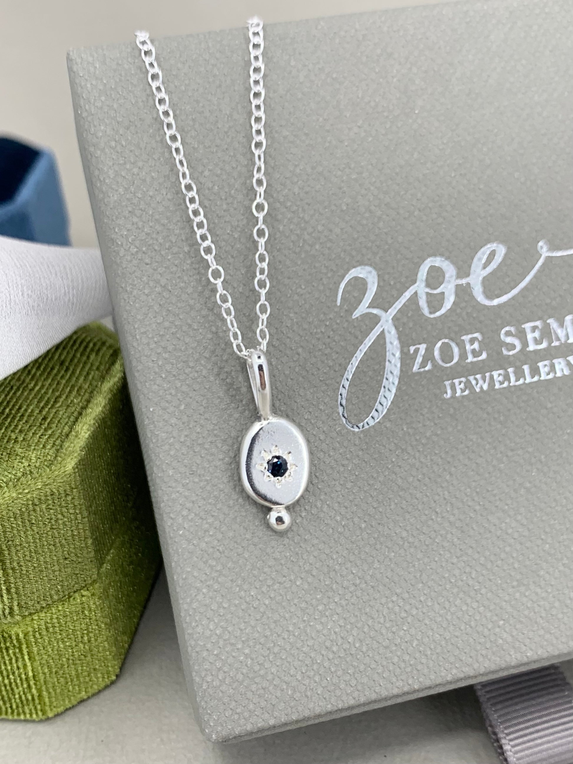 Sapphire - 2.8mm sapphire, sterling silver and small sterling silver accent ball.