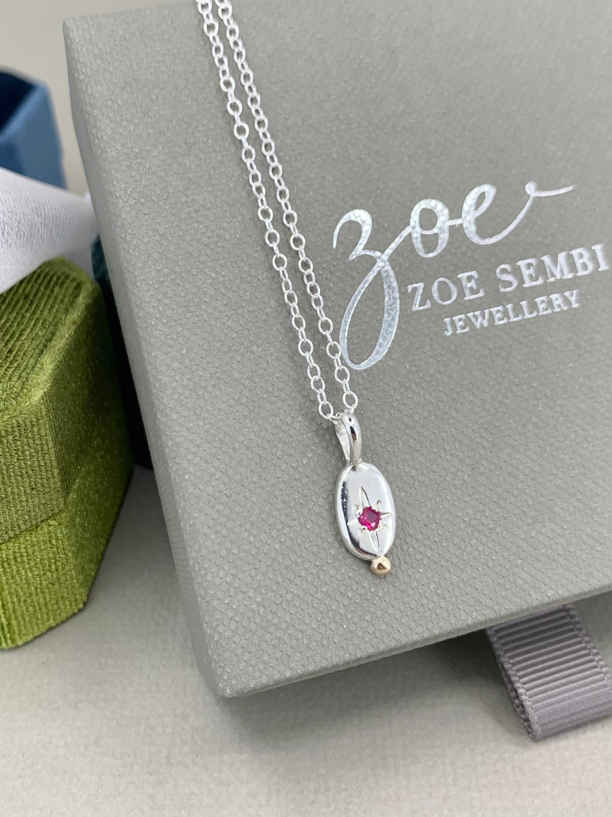 Star set pendant with emerald, sapphire or ruby