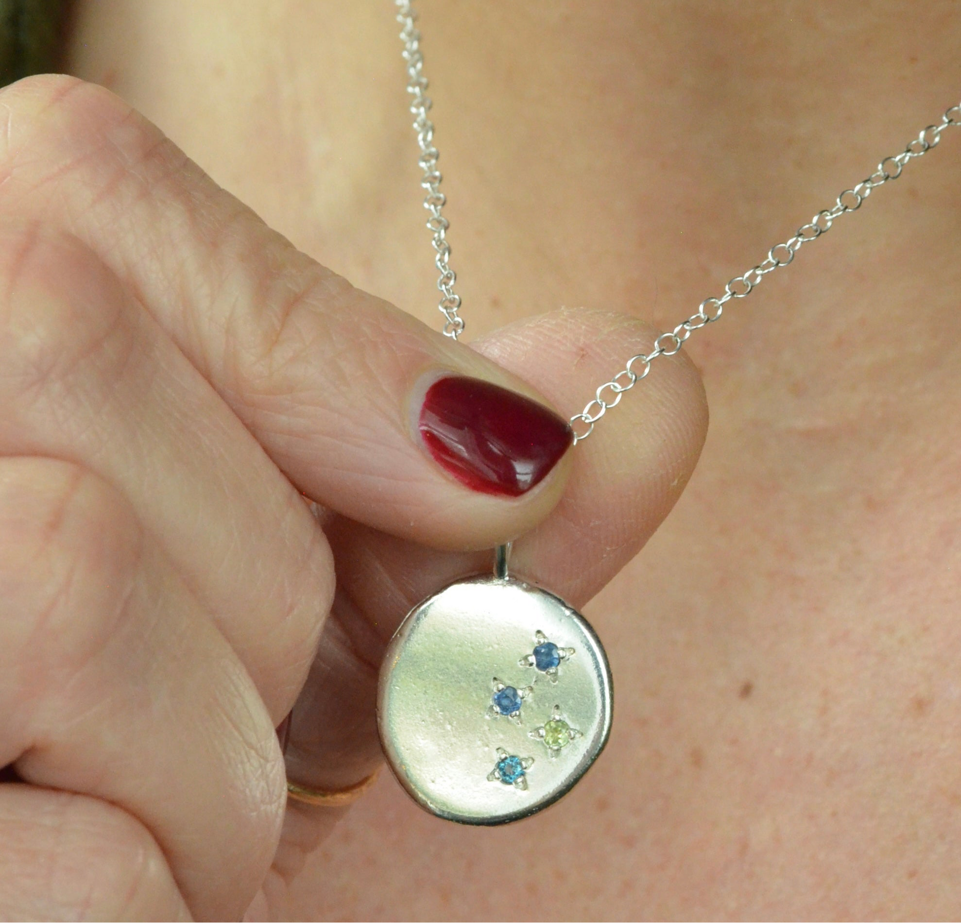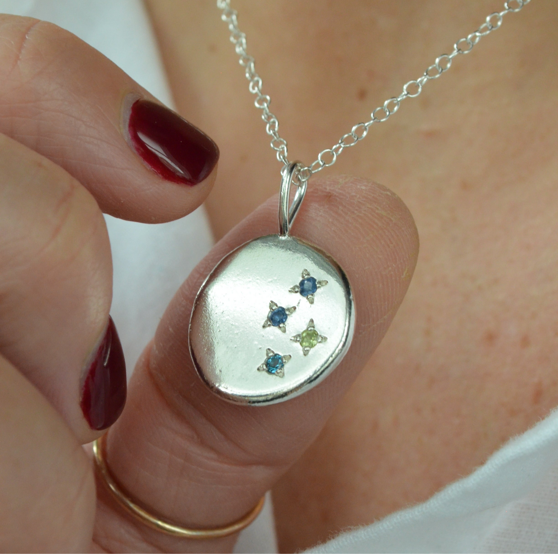 The beautiful 'Written in the stars' multi birthstone pendants allows you lots of freedom to personalise your pendant with stones special to you.